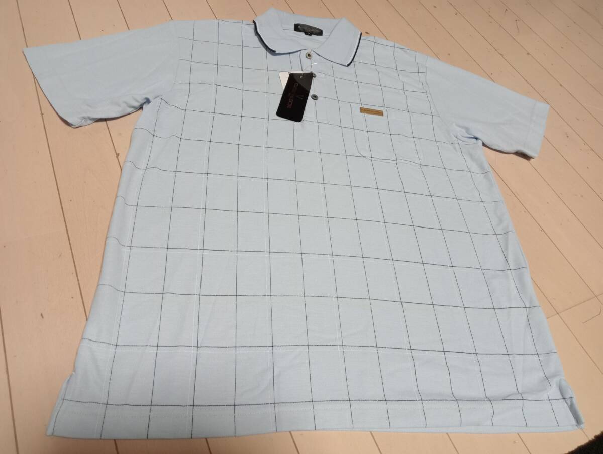 - 新品 未使用品 ゴルフ ポロシャツ Lサイズ メンズ 紳士 水色 ブランド 半袖