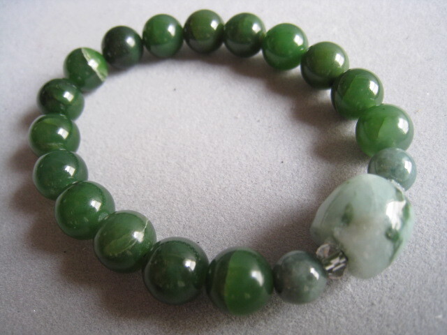 > [SAMU]綺麗!天然ひすい最大珠13mmx12mm 珠10mm 長さ19cmブレスレット 新品同様!