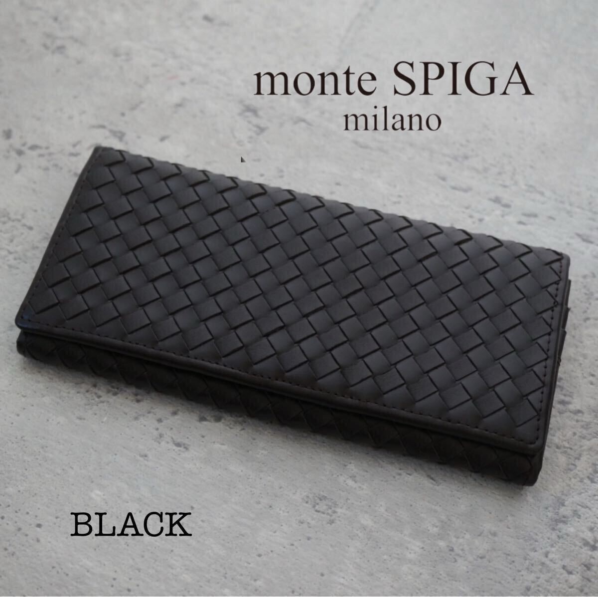 - monte SPIGA-モンテスピガ◎ 牛革 本革 長財布 小銭入れ付き 財布 レザー ブラック メンズ BK