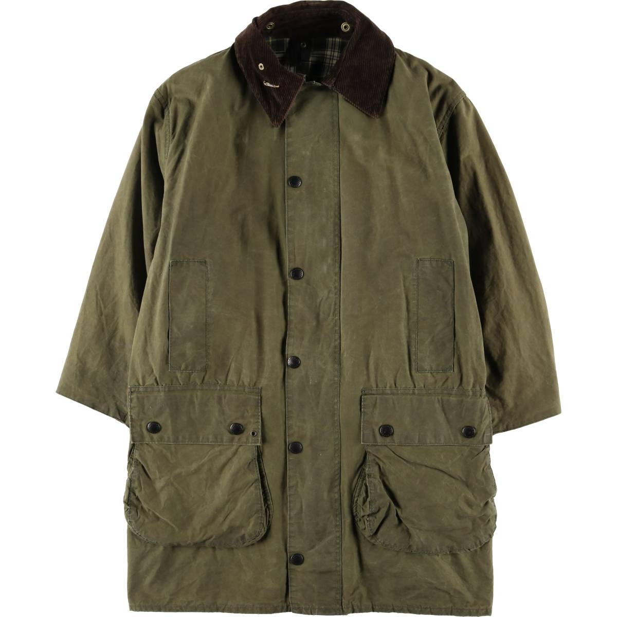 - 古着 80~90年代 バブアー ボーダー 旧3ワラント バッジ付き ワックスコットン オイルドジャケット 英国製 C36 ヴィンテージ /evb007525