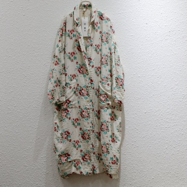 - jm カーディガン 羽織物 ゆったり ふんわり 楽な着心地 綿麻混 花柄 ダル タフ ベージュ系