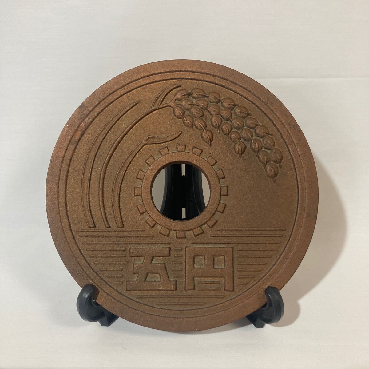 - 5円玉モチーフ 置物 直径約18cm 796g 皿立て付き