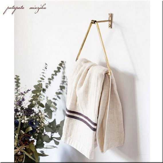 - 真鍮 ブラストライアングルホルダー タオルハンガー タオルレール ブラス タオルバー パタミン アンティーク調 ブラス