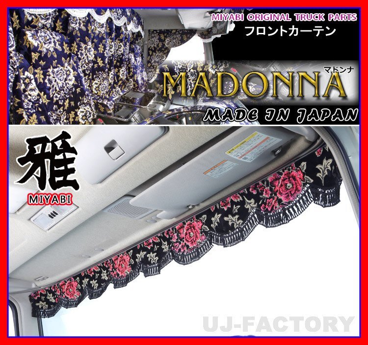 > ★MIYABI/フロントカーテン MADONNA・LLサイズ/ブラック×ピンク★横幅2400mm バラ柄の金華山織に秋桜の押し柄!豪華な仕上げ♪