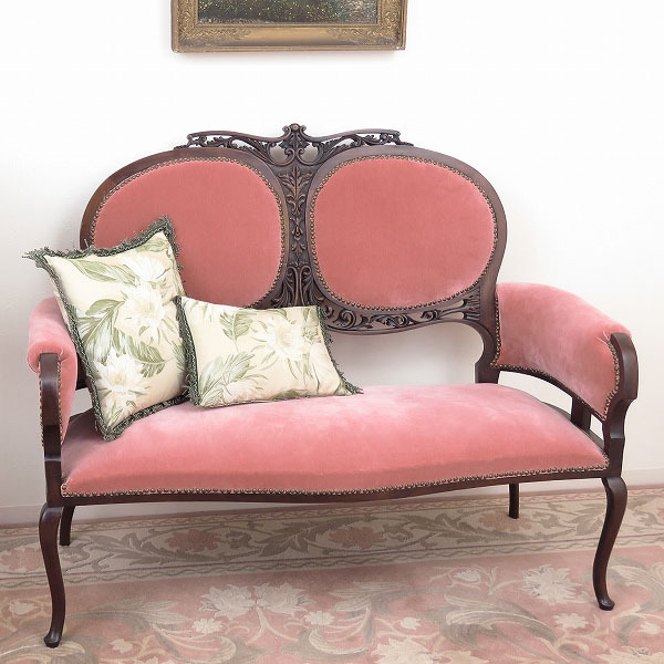 - ヴィクトリアン様式の繊細なセティ/ソファー/木製椅子/イス/店舗什器/ディスプレイ/インテリア/イギリス(英国)アンティーク家具/A-2346