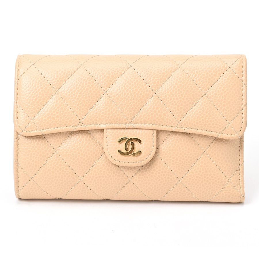 > シャネル マトラッセ ミディアム フラップ ウォレット AP0232 キャビアスキン ベージュ系 【中古】 S155823 値下げ