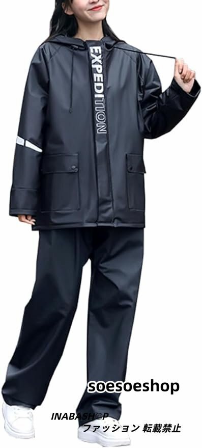 - シンプル レインスーツ 上下セット レディース レインウェア レインジャケット+ンパンツ 2点セット ルーズ 通気 防水 おしゃれ 梅雨対策