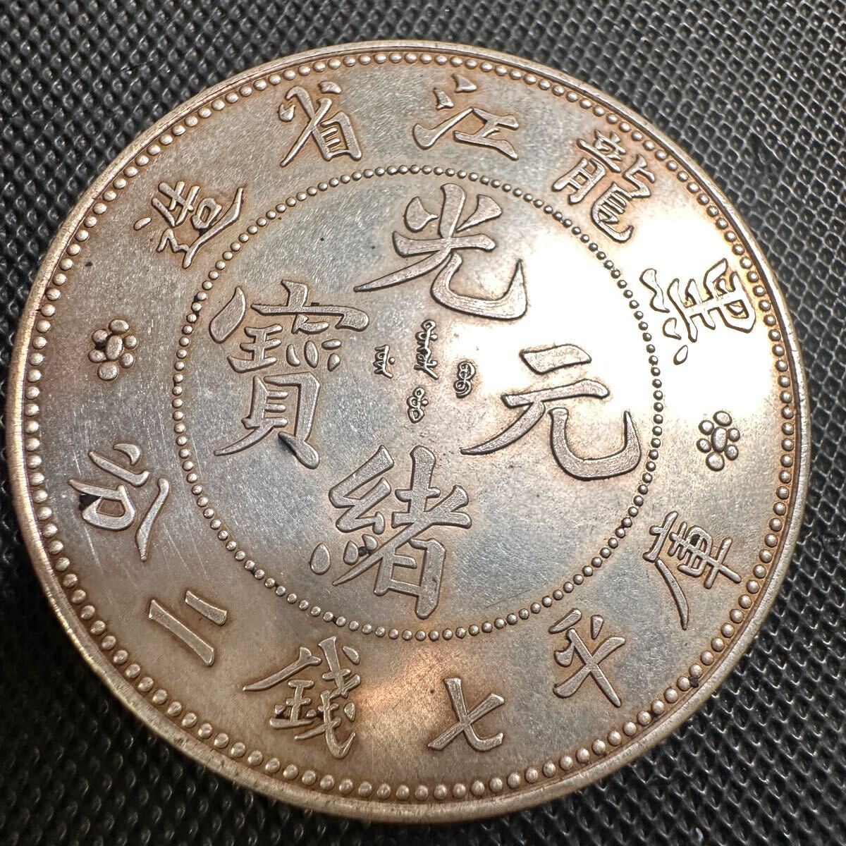 - 中国 古銭 大清 黒龍省造 中国銀貨 B23 大型コイン光緒元宝 重さ26.6g 庫平七銭二分 光緒元寶