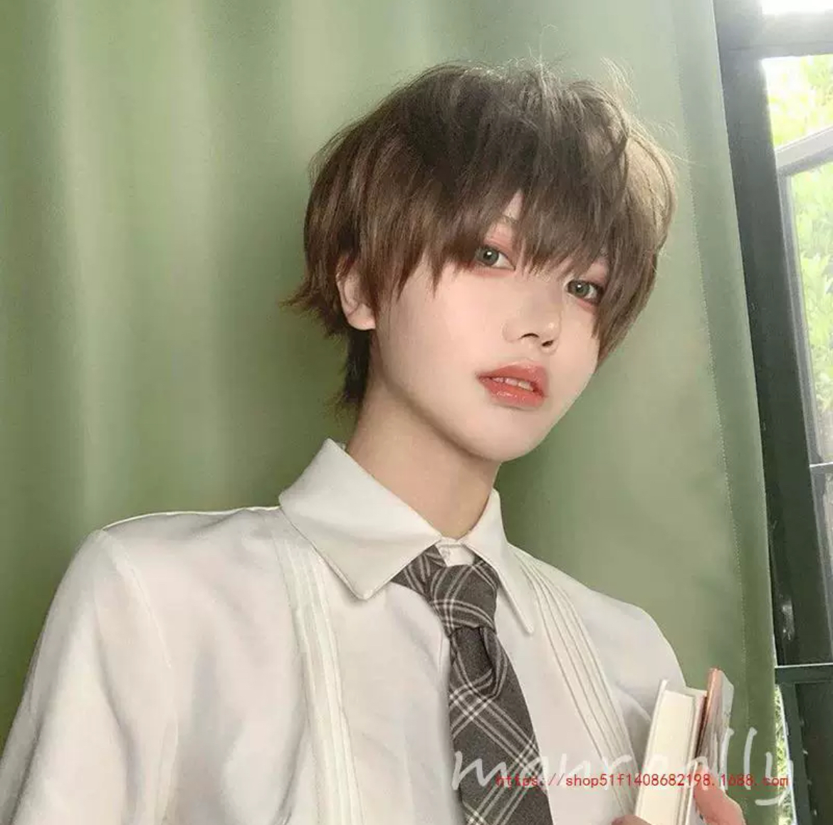 - 【新品!未使用!】ウイッグ メンズ ブラウン かつら ショート 男女兼用 フリーサイズ