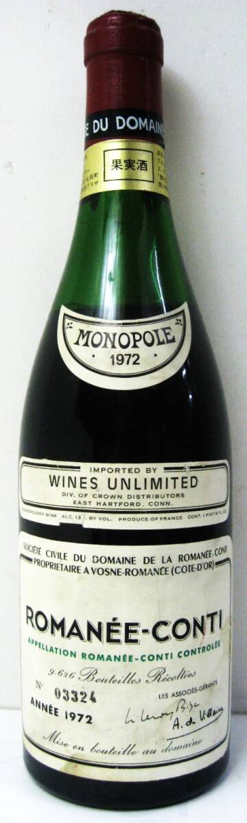 - 【東京 谷中 質屋おぢさん】ワイン果実酒 1972年ロマネコンティROMANEE-CONTI № 03324