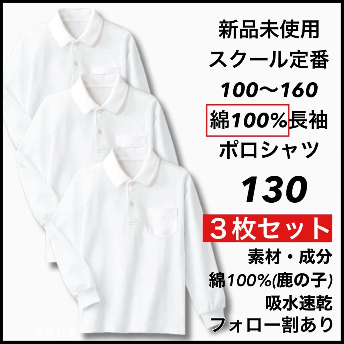 - 新品未使用 子供服 綿100% 長袖ポロシャツ 吸湿速乾 スクール男女兼用 キッズ 130サイズ 3枚セット