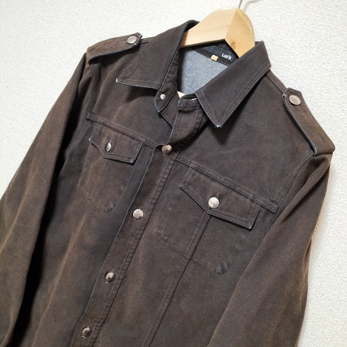 > ★Lui's 本革 牛革 レザーシャツ レザージャケットトップス カジュアルアウター サイズ1 ダークブラウン アーカイブ ルイス 日本製 USED