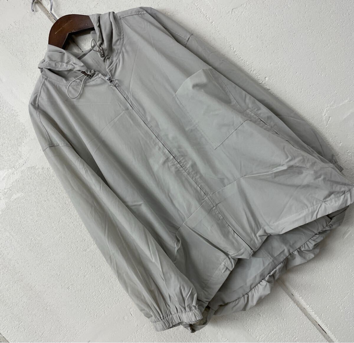 - 訳ありバックボリュームデザインストレッチパーカージャケットライトグレー