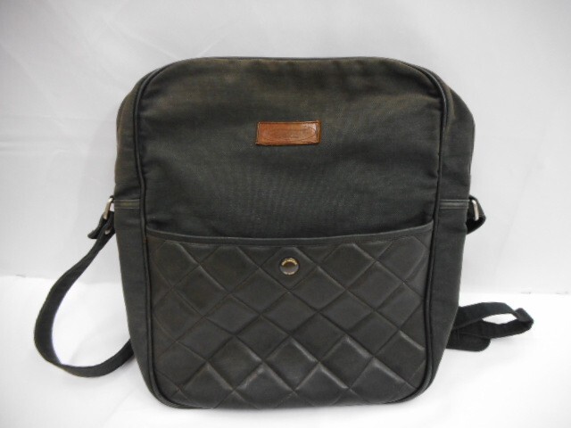 > 75 送80サ 0309YD04 LOST CONTROL ロストコントロール キルティング レザー キャンバス ショルダーバッグ ブラック 中古品