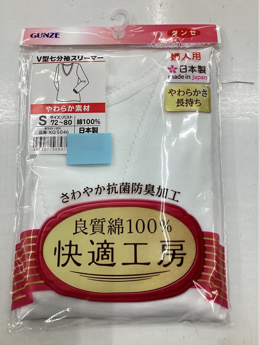 - [M285]日本製グンゼ☆抗菌防臭☆V型七分袖スリ-マ【S☆ホワイト】