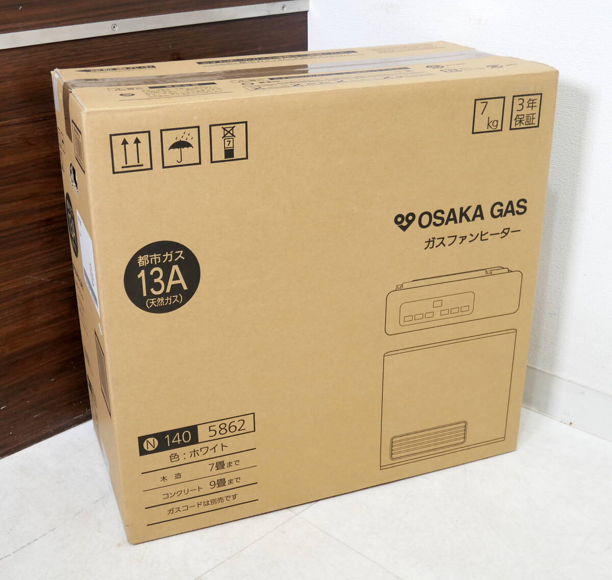 > ▲(R703-H34) 未使用 大阪ガス N140-5862 ホワイト ガスファンヒーター 13A 都市ガス 箱付き