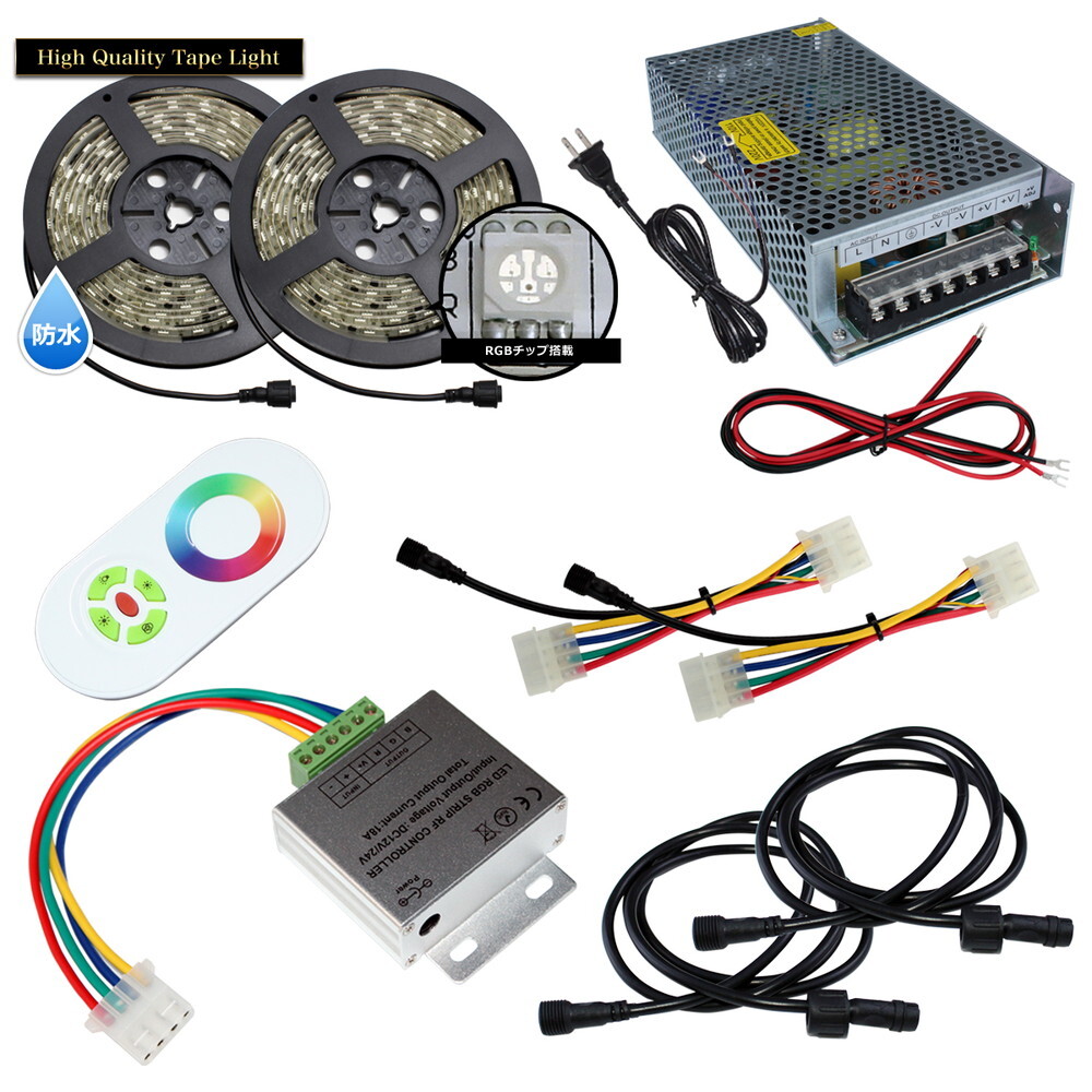- スマコン50cm 2本セット 防水 RGB LEDテープライト RoHS対応 RF調光器 対応電源付き