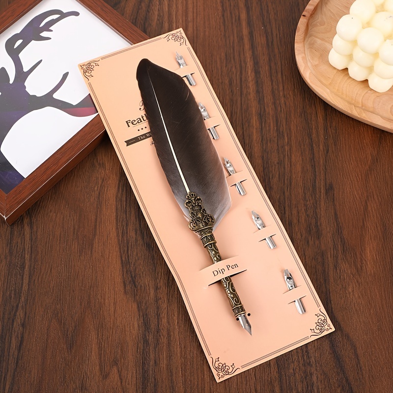 - 万年筆 おしゃれ フェザー 羽根 高級感 グレー 金属 ペン先5点セット アンティーク風 プレゼント 書きやすい 普段使い かっこいい t5116