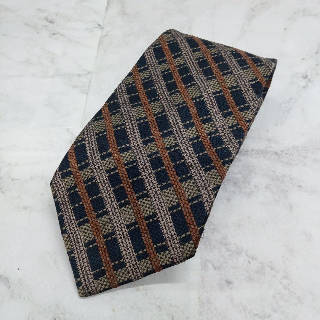 - オースチンリード ネクタイ 紺×薄緑×灰色×オレンジ ストライプ【n431】