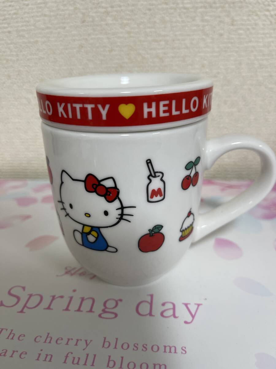> 【希少レトロ】★ハローキティ/HELLO KITTY★ティーレスト付マグカップ「サンリオ」