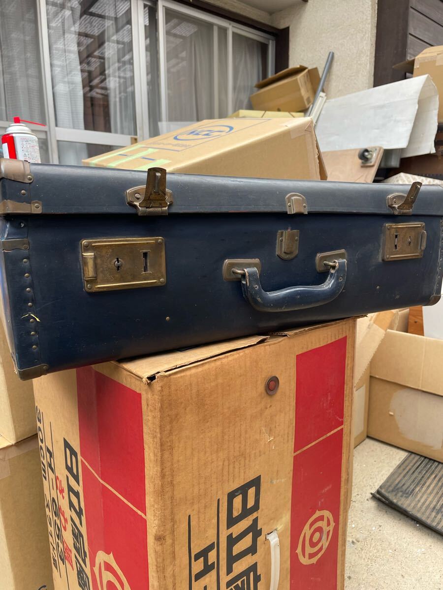 > ヴィンテージ トランクケース 鞄 スーツケース 濃紺 レトロ 昭和レトロ アンティーク カバン 古道具 当時物 現状品 鍵なし