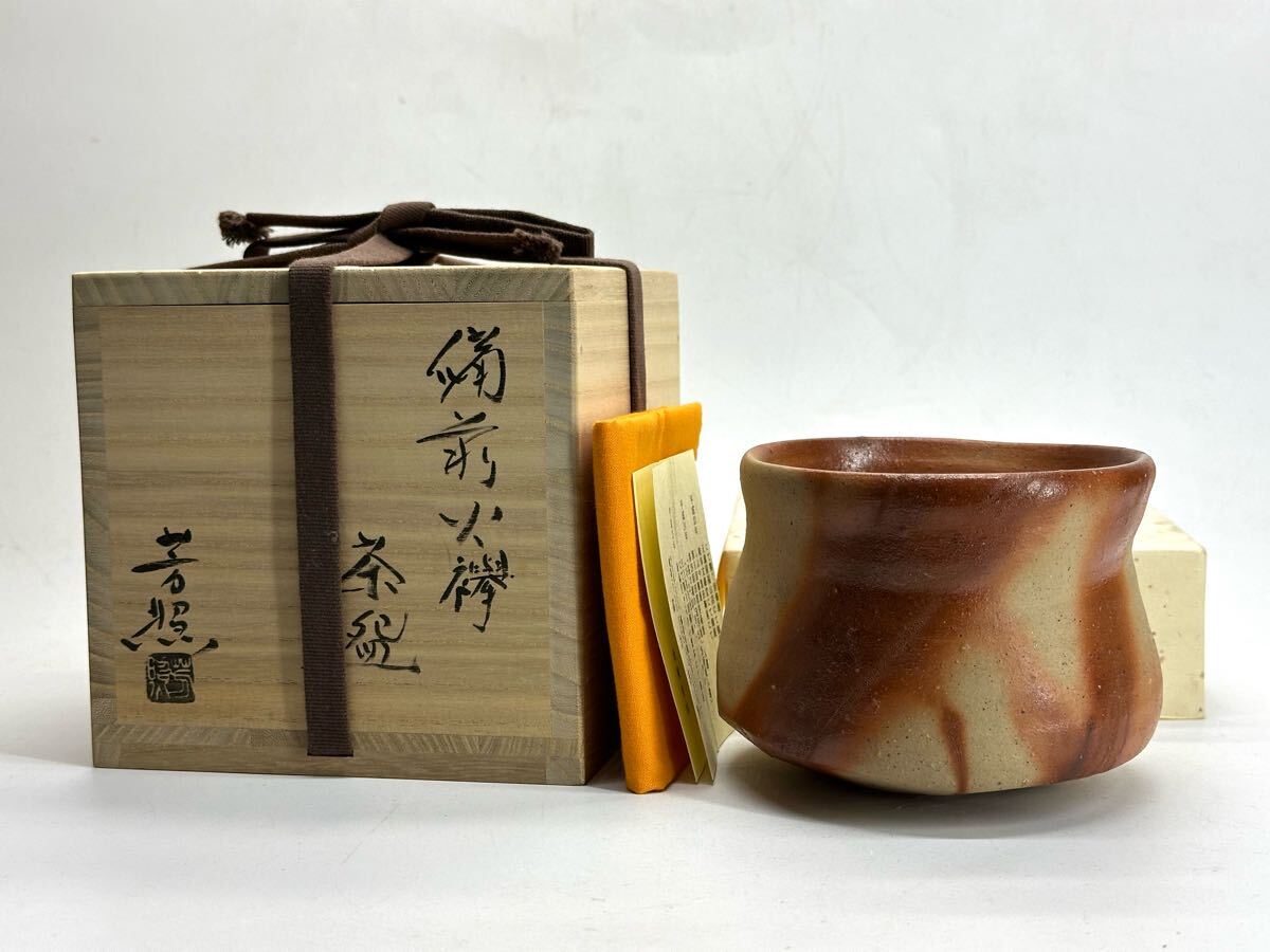 - 高力芳照 備前 緋襷 茶碗 共箱 火襷 茶道具
