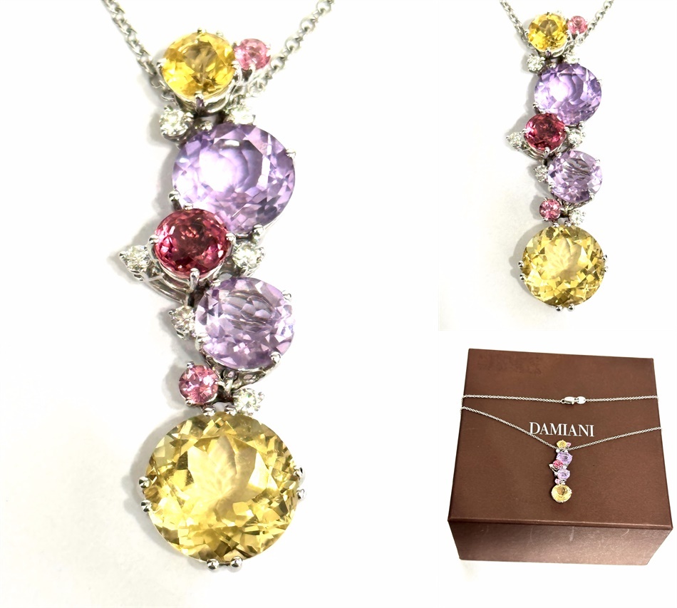 > 入手困難 レア 美品 DAMIANI ダミアーニ ラヴィアンローズ マルチ 大粒 ダイヤ シトリン アメジスト トルマリン ネックレス K18