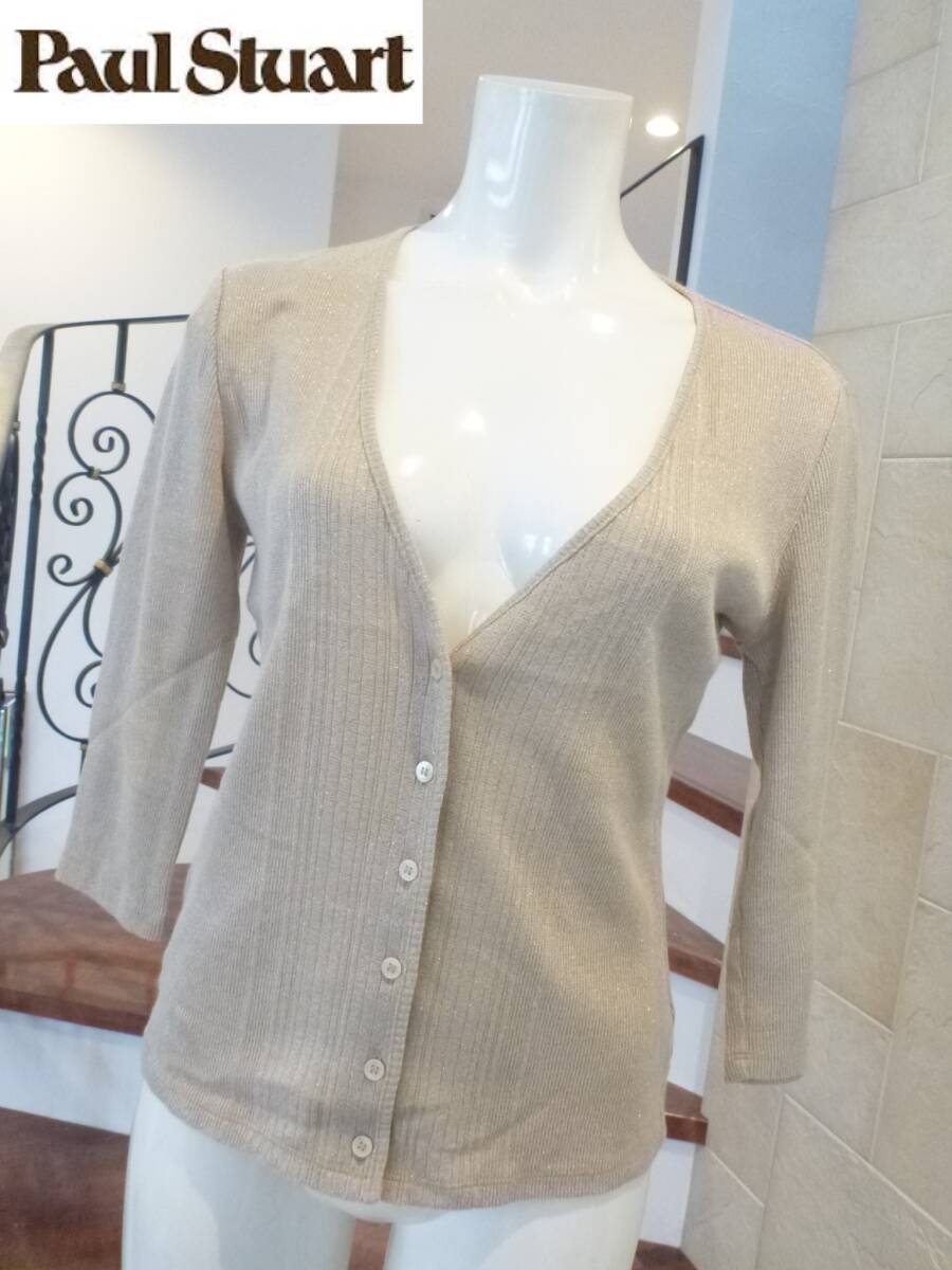 - 超美品 Paul Stuart ポールスチュアート★日本製 ベージュ ラメ カーディガン 6 M相当