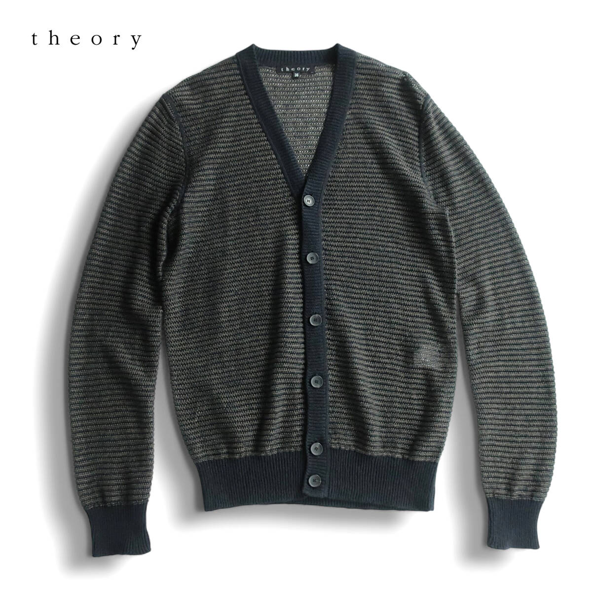 > 美品 theory セオリー 上質◎ローゲージニット リネンカーディガン 麻 メッシュ編み ネイビーミックス メンズ36(M)