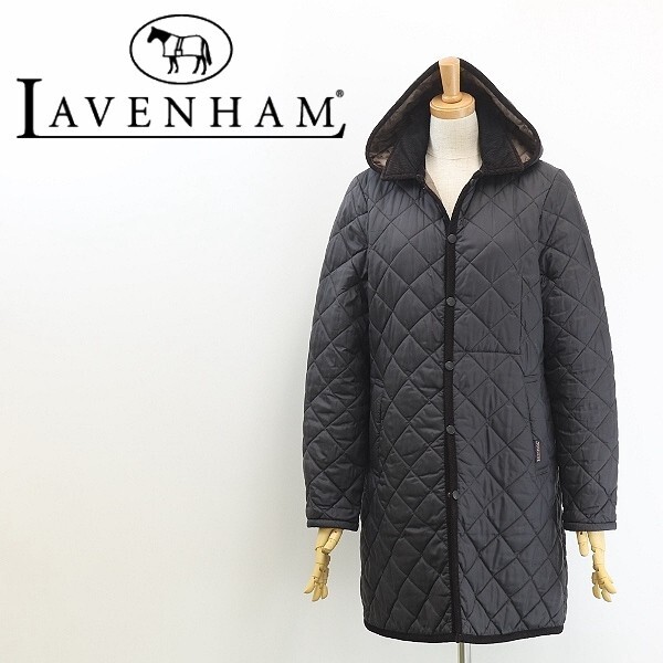 > 英国製◆LAVENHAM ラベンハム キルティング 中綿 フーデッド パイピング コート チャコール 38