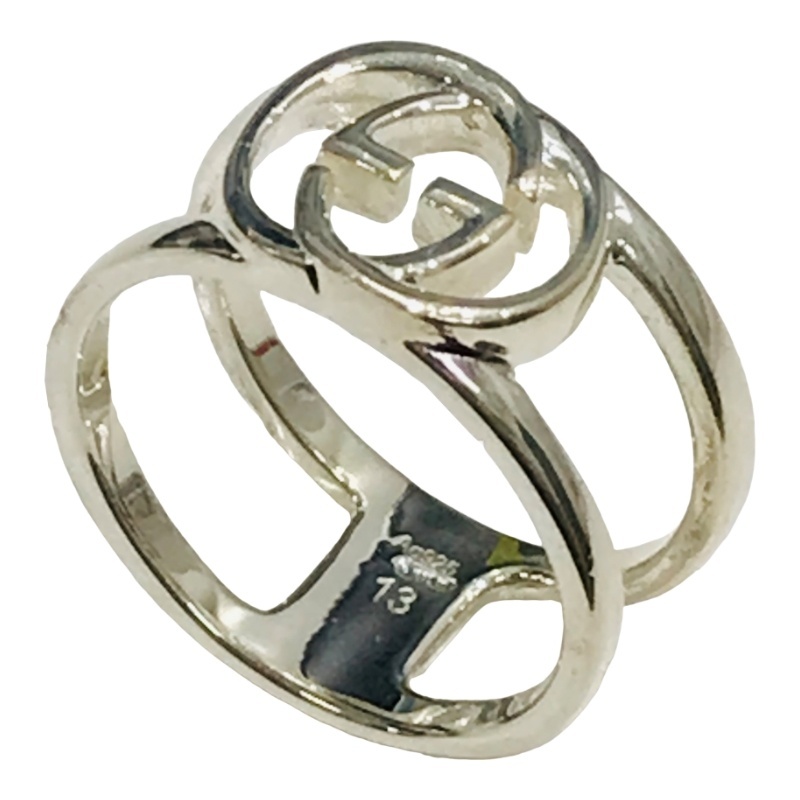 - GUCCI グッチ 指輪 インターロッキング ワイド オープン バンド 295716 J8400 8106 シルバー AG925刻印 約12号 【中古品】 22502K573