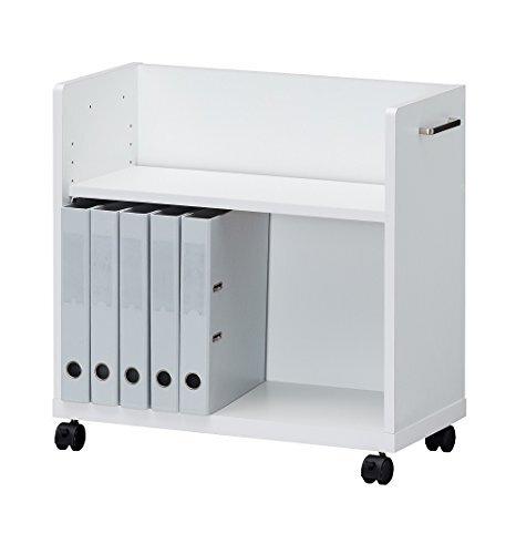 - 白井産業 デスクサイドに便利 サイドワゴン ラック キャスター付き デスク下収納 A4ファイルボックス縦置き対応 背面化粧 木製 白 幅60 高
