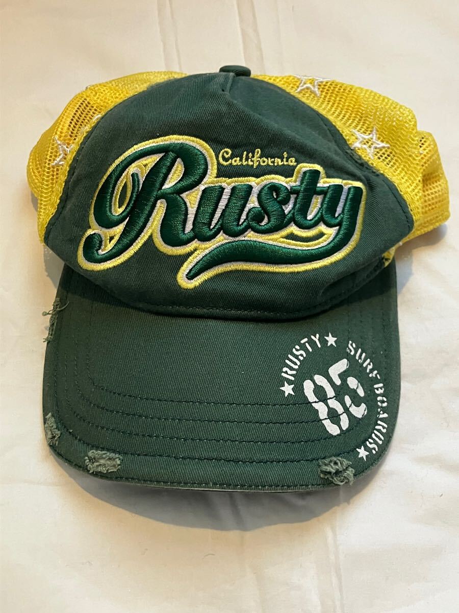 - RUSTY メッシュキャップ グリーン×イエロー ヴィンテージ加工