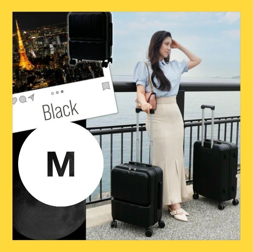 > 【新品未使用品】スーツケース M ブラック 【Mサイズ】42cm×62cm(フロントオープンポケット:33cm)【Mサイズ】4.4kg(容量53.2L)