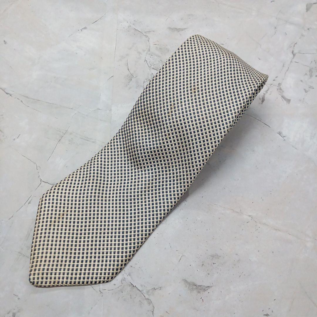 - ブリューワー ネクタイ 白 ギンガムチェック シルク【n583】