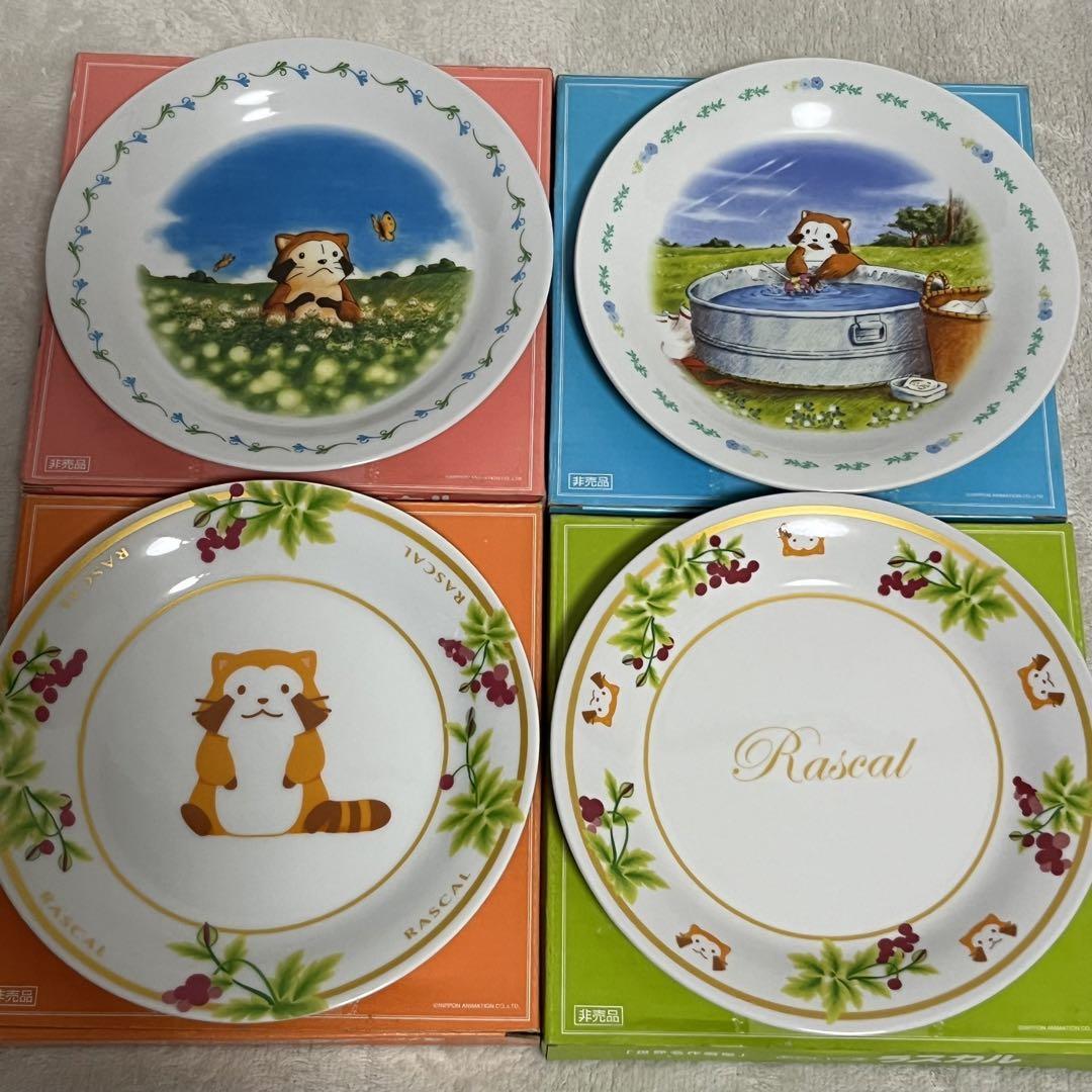- 非売品 未使用 世界名作劇場 あらいぐまラスカル 絵皿 プレート4枚セット① セブンイレブン 限定企画 特製絵皿シリーズ
