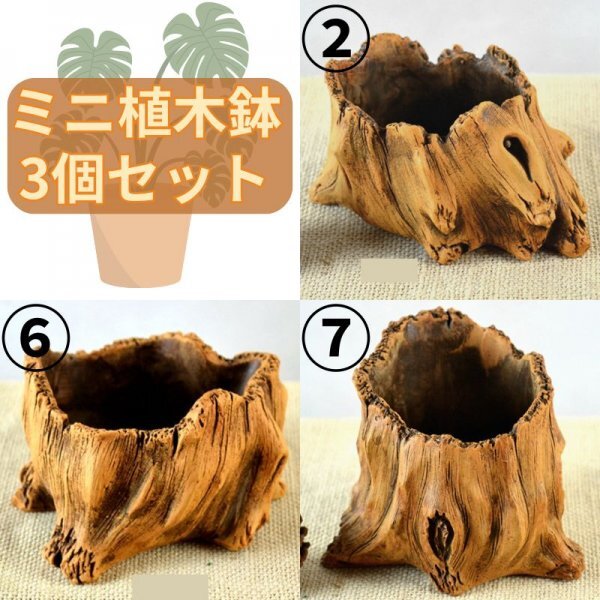 > ミニ植木鉢②⑥⑦ 陶器製 多肉植物 おまとめ おしゃれ ポット 観葉植物 サボテン 園芸用品 ガーデニング雑貨 プランター 切り株風 小さめ