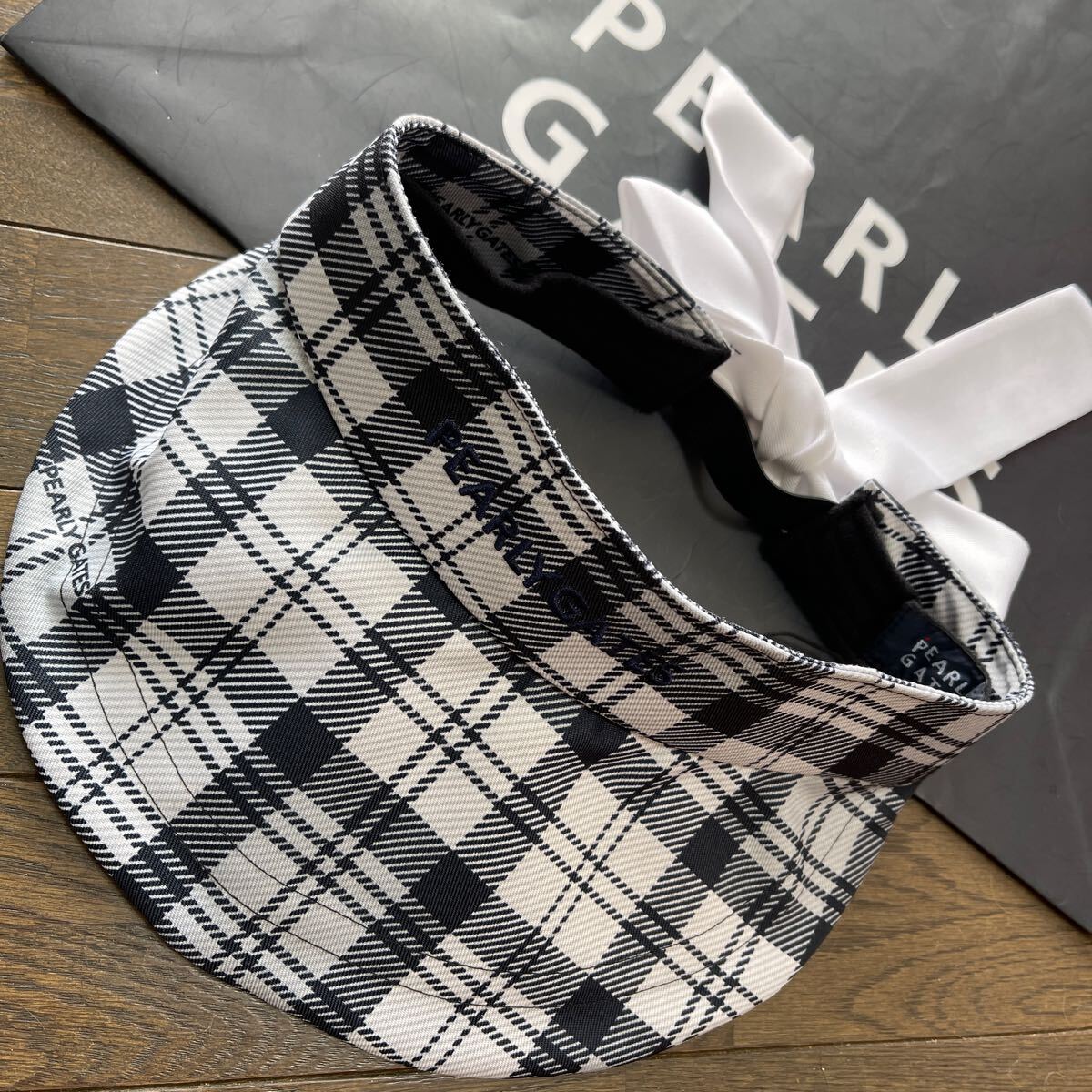 - 送料無料PEARLY GATESパーリーゲイツLADIESつば広リボンバイザー紫外線保護小顔効果速乾汗止めテープSOFTワイヤー白紺チェック(大特価)新品
