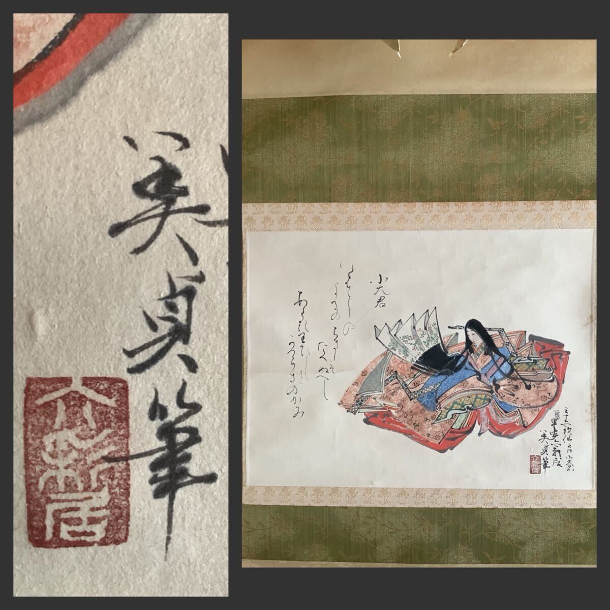> 【模写】掛軸M728BL[藤原美貞 三十六歌仙 小大君]彩色紙本 書いたもの 共箱/日本画 美人画 人物画 百人一首  京都 歌人