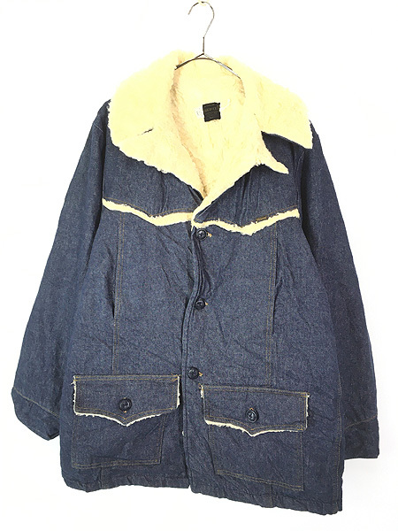 - 古着 70s Sears ROEBUCKS 濃紺 100%コットン デニム ボア ランチ コート 44-XT