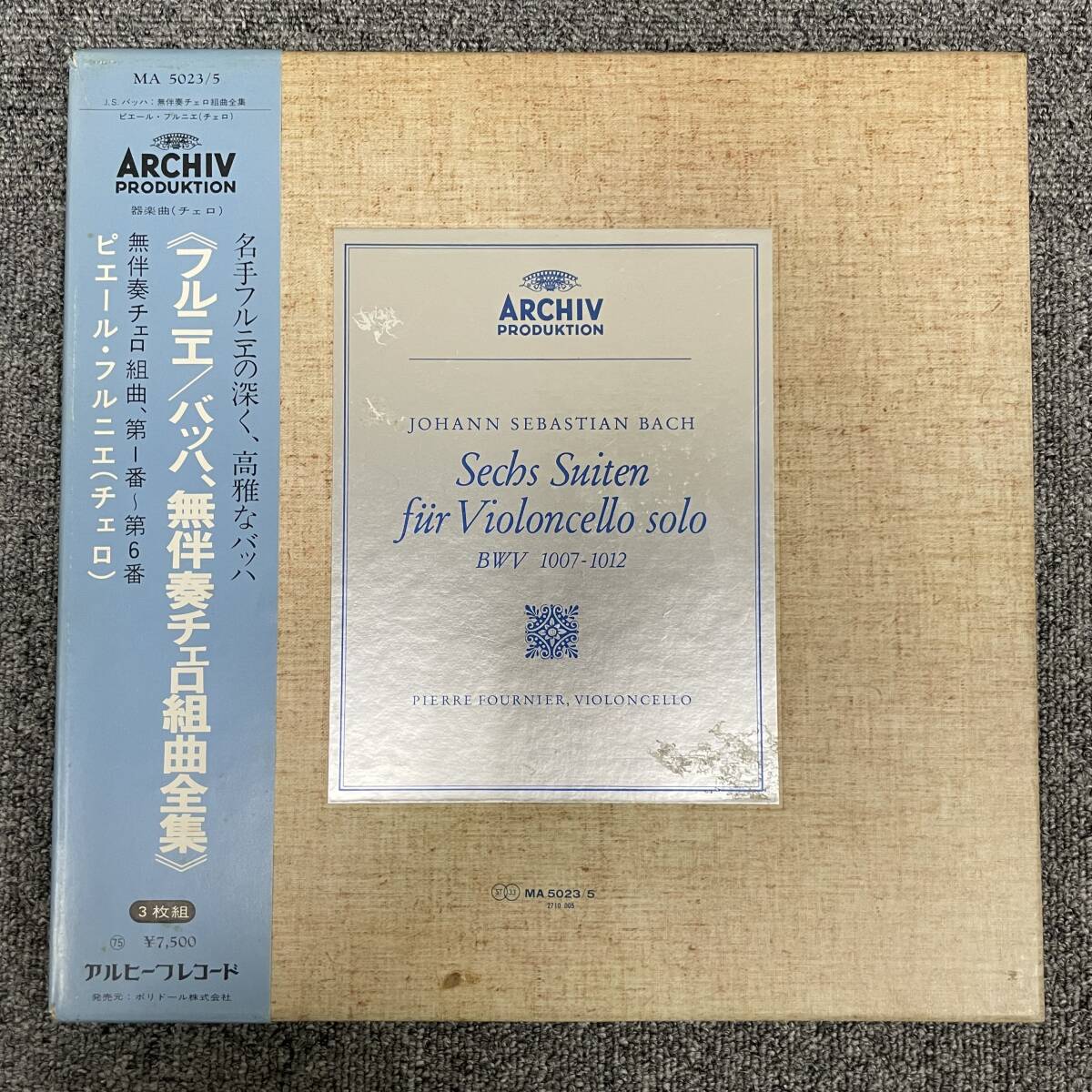 > 帯/LP/BOX/バッハ/無伴奏チェロ組曲全集 ピエール・フルニエ(Vc) 1960年録音 日本ポリドール MA5023~5 LP3枚組BOX/F0311B20