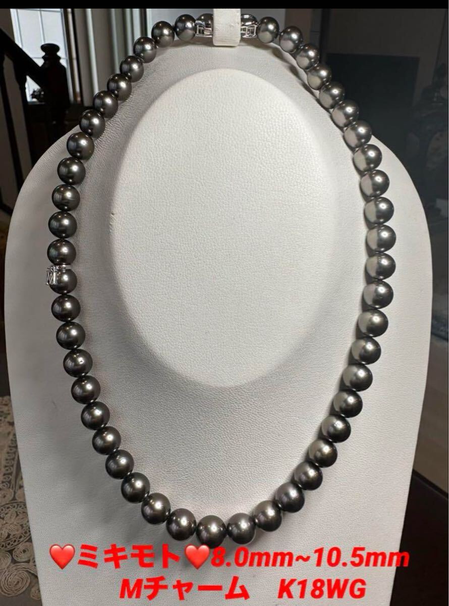 - ミキモト●MIKIMOTO黒蝶パールネックレス8.0~10.5mm k18WG