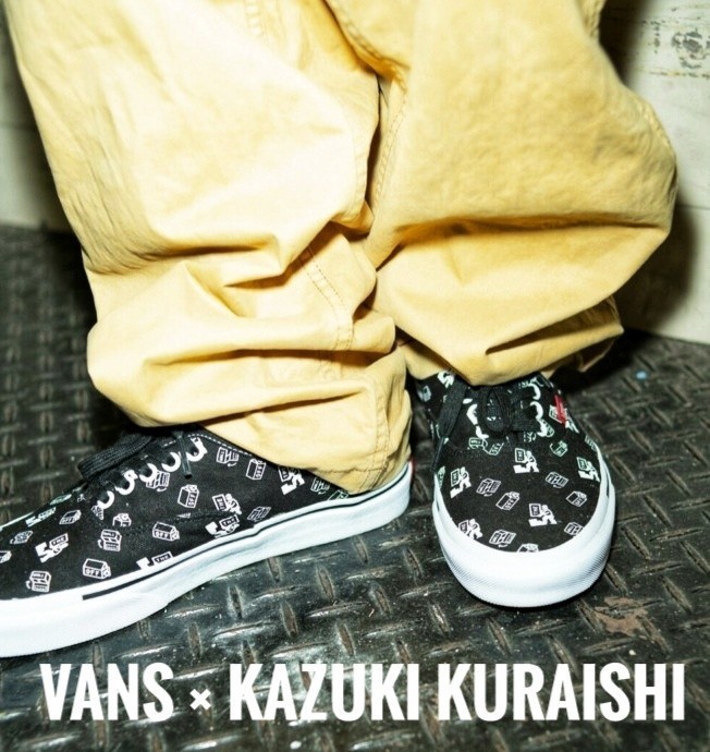 > 最値!新品!定8250円!90'sアーカイブ!別注スマイリーフェイスモデル!倉石 一樹×VANS オーセンティック コラボ スニーカー!ブラック!黒 26.5