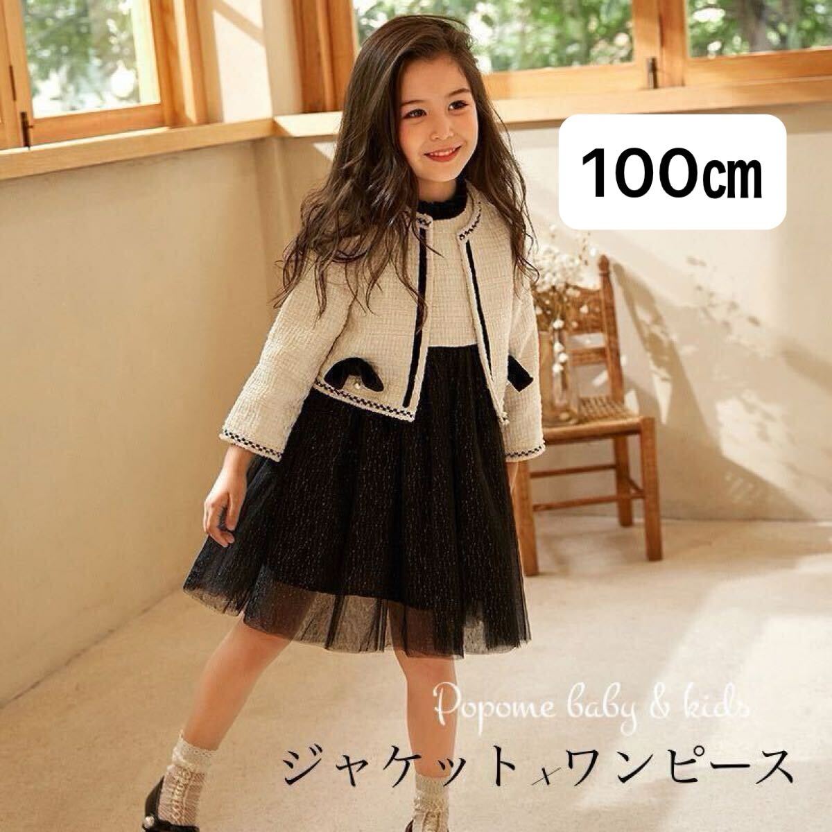 - 【100㎝】新品女の子フォーマルスーツワンピースセットアップ入学式卒園式発表会チュールスカートジャケットリングガールジュニアドレス