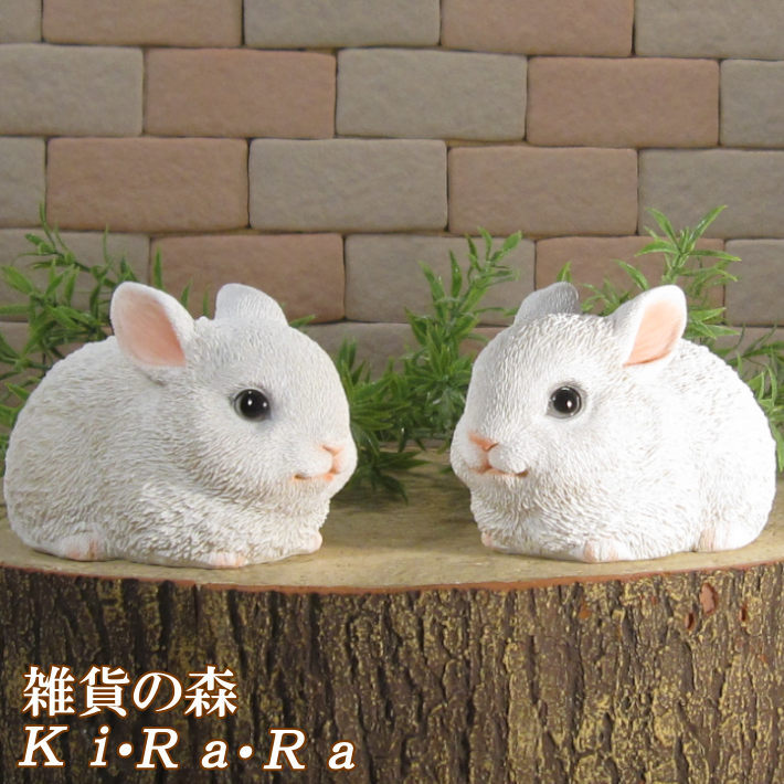 - 置物 動物 可愛い 白うさぎ お座り ミニ白ウサギ 2体セット うさぎの置物 ラビット バニーオブジェ ガーデン 装飾