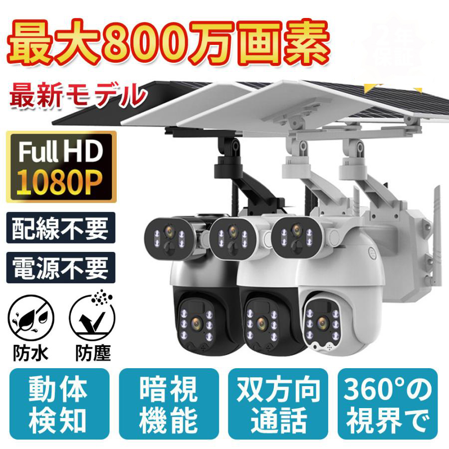 - 防犯カメラ 屋外 家庭用 wifi 最大800万画素 ソーラー ワイヤレス 監視カメラ 配線不要 録画 夜間カラー 遠隔監視 動体検知 双方向通話