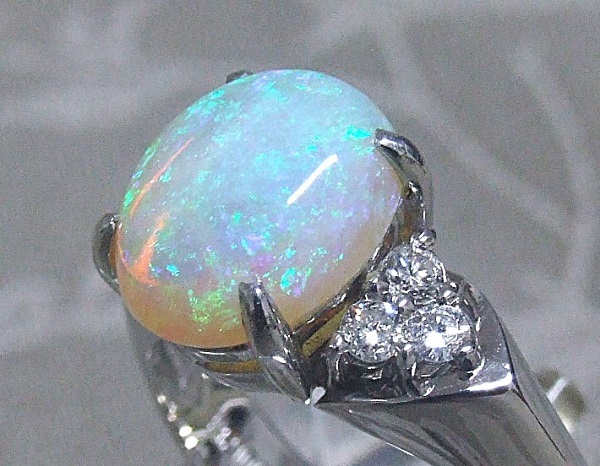 > ◆ 在庫大処分!超得プライス!■ 人気の遊色効果が素敵!★ ” オパール ” ◆ 指輪(ダイヤ入り 0.188)★ Pt 900(刻印入り)◆