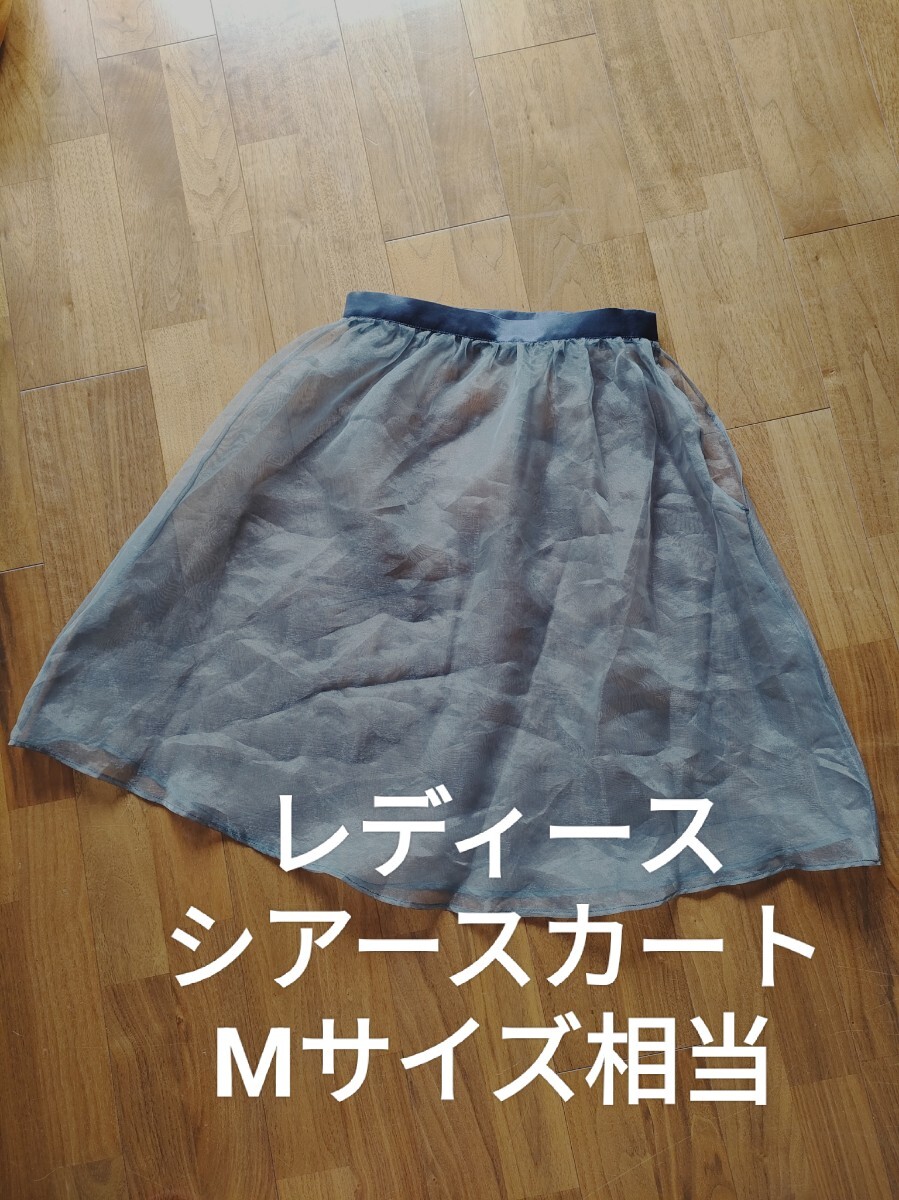 - レディース ミディアム丈 シアー フレア スカート グレー Mサイズ相当