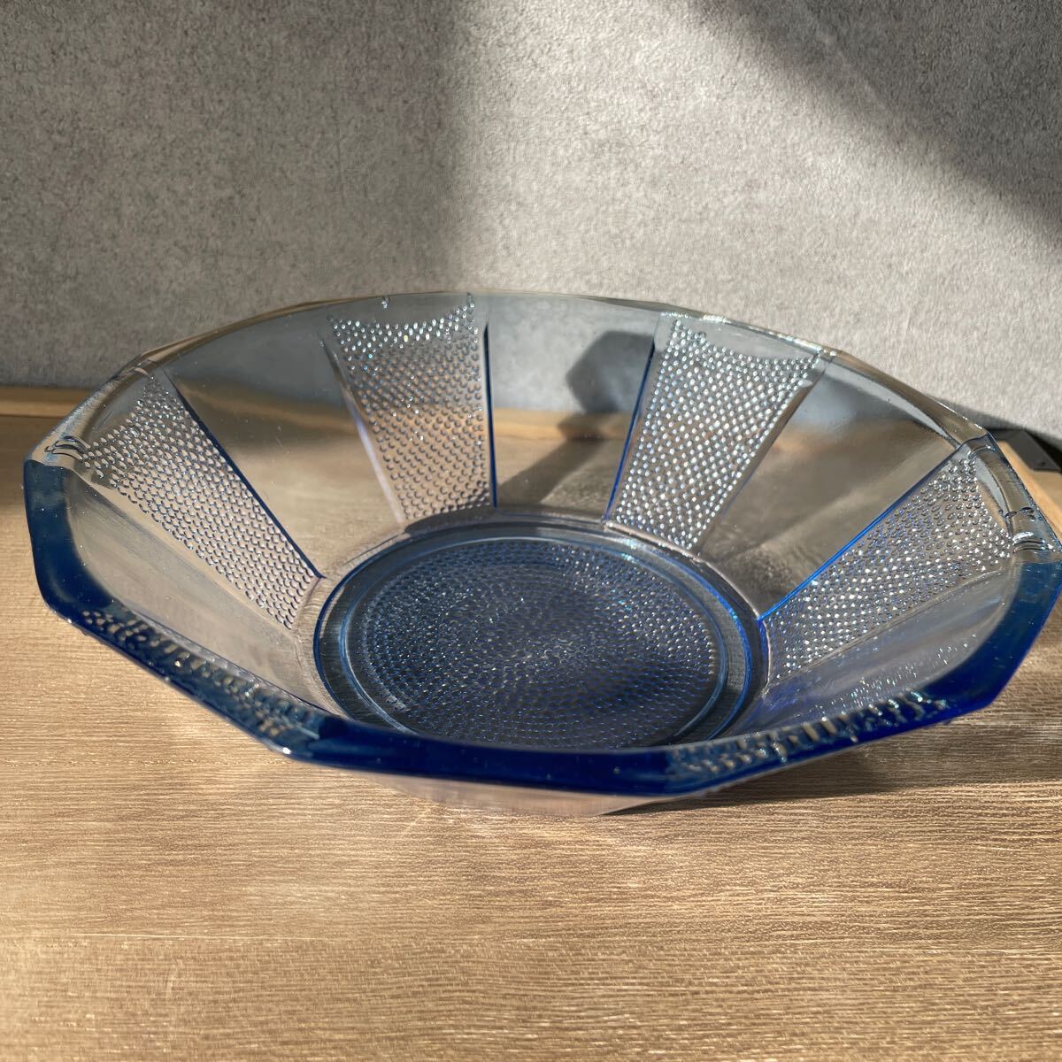 > プレスガラス サラダボウル 昭和レトロ 気泡 アンティーク ヴィンテージ ヨーロッパ調 ブロカント アフターヌーンティー