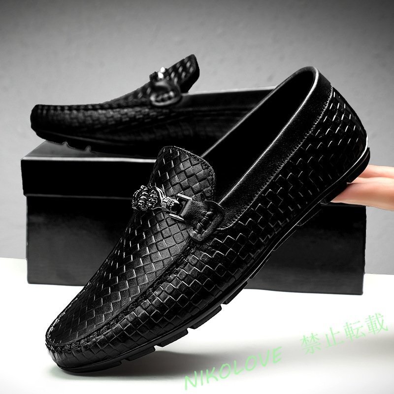 - 新品 ローファー スリッポン チェック柄 ドライビングシューズ 牛革 ビジネスシューズ 本革 メンズ 紳士靴 レザーシューズ 黒 LF646